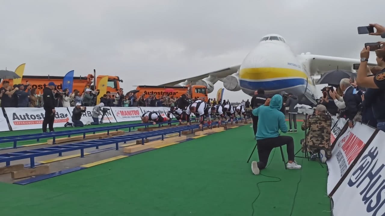 Вони протягнули найбільший в світі літак Ан-225 "Мрія" майже на 5 метрів! Його вага 330 тон. Вчора на тренуванні стронгеменам вдалося протягнути літак тільки на 10 см з 7 спроби. Раніше подібний рекорд вже встановлювали, але тоді "Мрію" тягли 10 спортсменів.