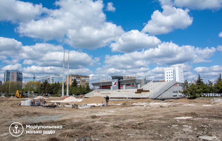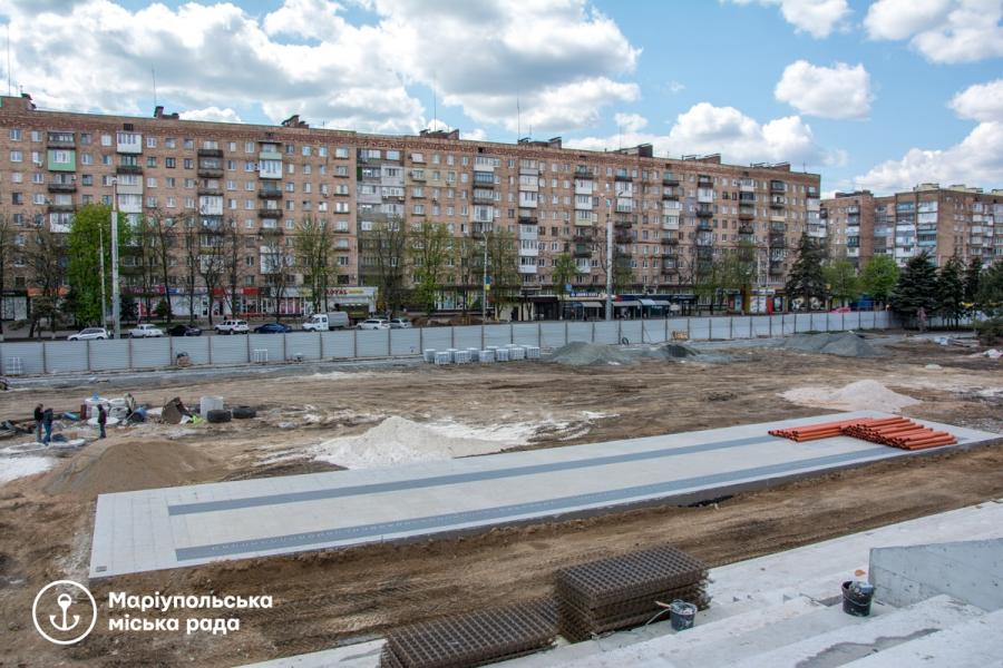 В Маріуполі під час карантину продовжують реконструювати площу Свободи. Фото, на яких видно як вона виглядає зараз оприлюднили міськрада.