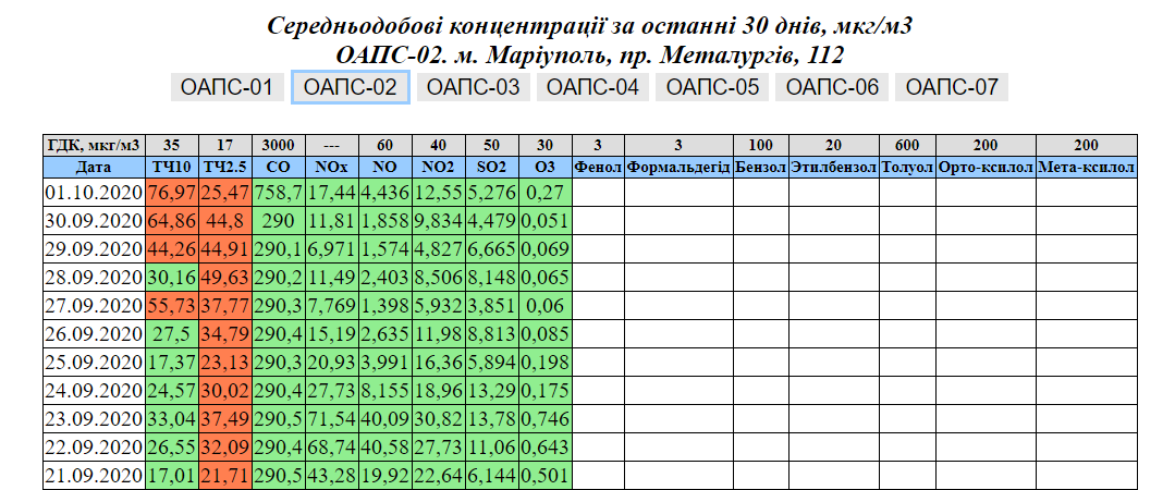 Саме за цим показником вже 11 днів демонструє забруднення пост на межі Центрального і Кальміуського районів. Він знаходиться на пр. Металургів, 112. У понеділок там було виявлено перевищення у майже три рази: при нормі 17 мкг/м³ підтверджено 49,63 мкг/м³.