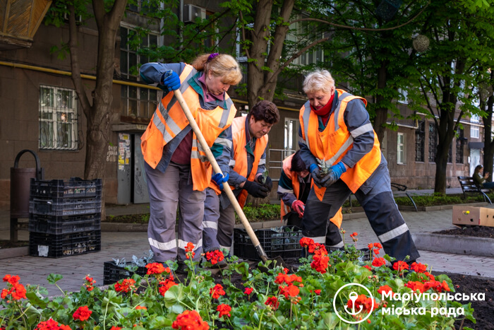Щодня від самого ранку у парках та скверах Маріуполя працює понад 800 співробітників МКП Зеленого будівництва. Вони висаджують та доглядають за квітами, аби містянам було приємно гуляти.