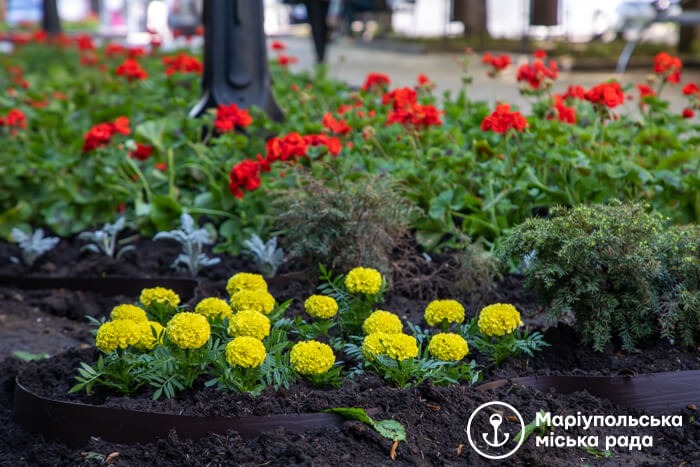 Алею біля маріупольської Вежі прикрасили сотнями нових квітів. Переважно там висадили чорнобривці.