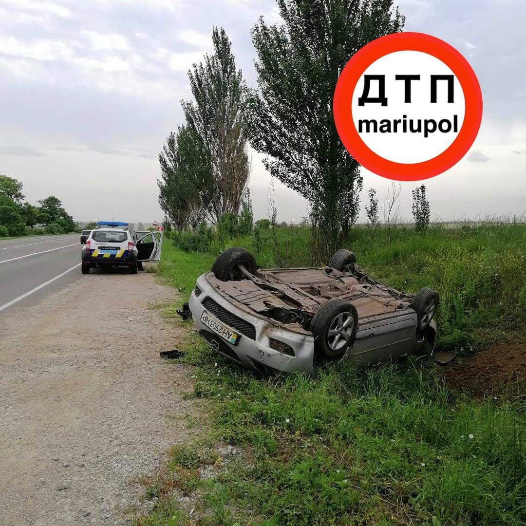 Аварія відбулась на трасі Маріуполь-Мангуш біля сел. Агробаза. Попередньо відомо, що водій рухався у бік міста, не впорався із керуванням та виїхав за межі проїжджої частини і перекинувся.