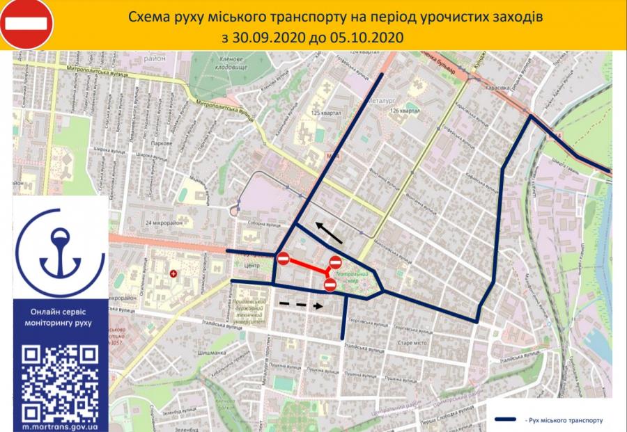 Пасажирський транспорт буде їздити об'їзним шляхом, з яким можна буде ознайомитись на сайті martrans.gov.ua