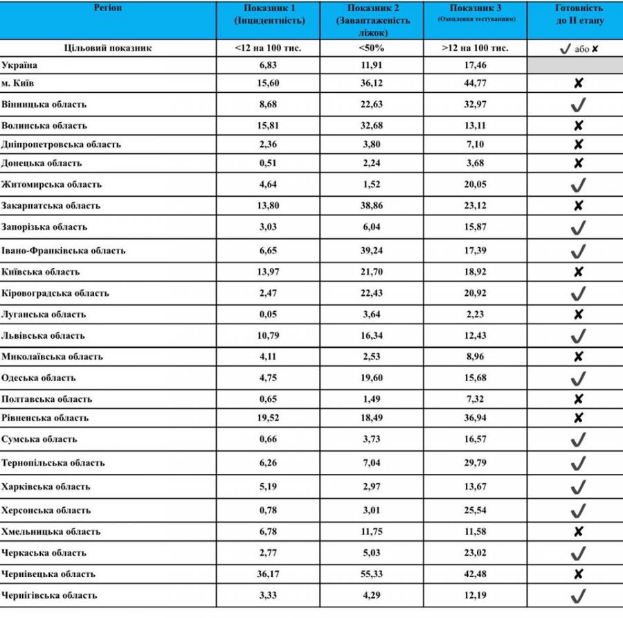 Натомість, Вінницька, Житомирська, Запорізька, Івано-Франківська, Кіровоградська, Львівська, Одеська, Сумська, Тернопільська, Харківська, Херсонська, Черкаська та Чернігівська області готові до другого етапу послаблення карантину.