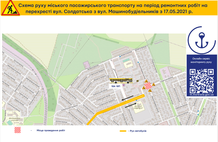 "Причина тимчасової зміни руху - проведення робіт по заміні теплової мережі у Кальміуському районі міста на перехресті вул. Солдатської з вул. Машинобудівельників", - вказано на сторінці.