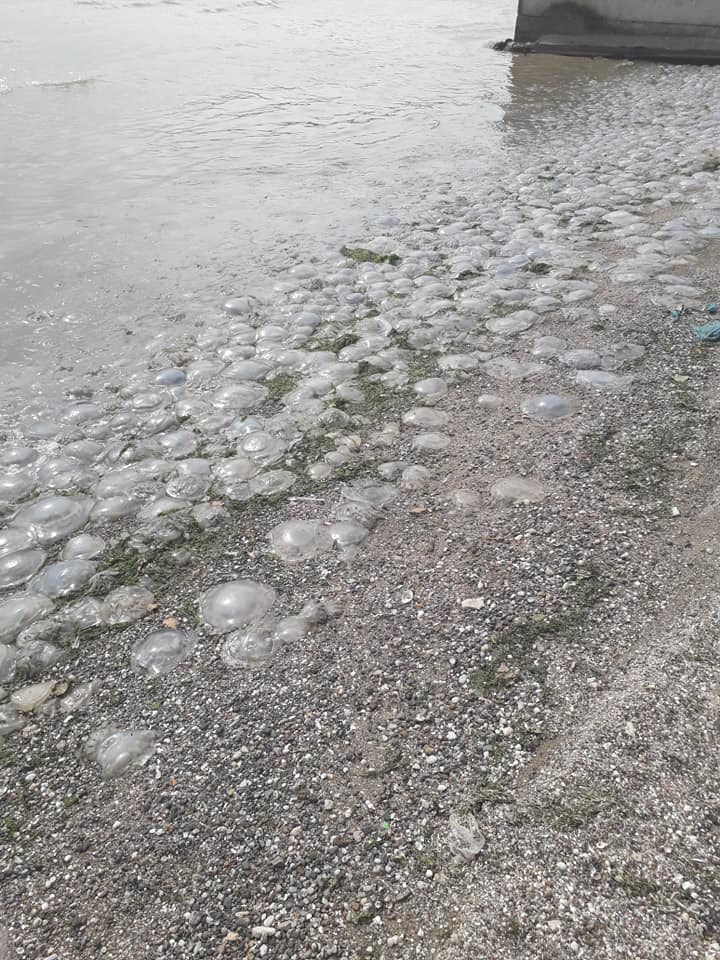Один з маріупольських пляжів заполонили медузи. Узбережжя Лівобережного району вкрилося прозорими тілами, наче килимом.