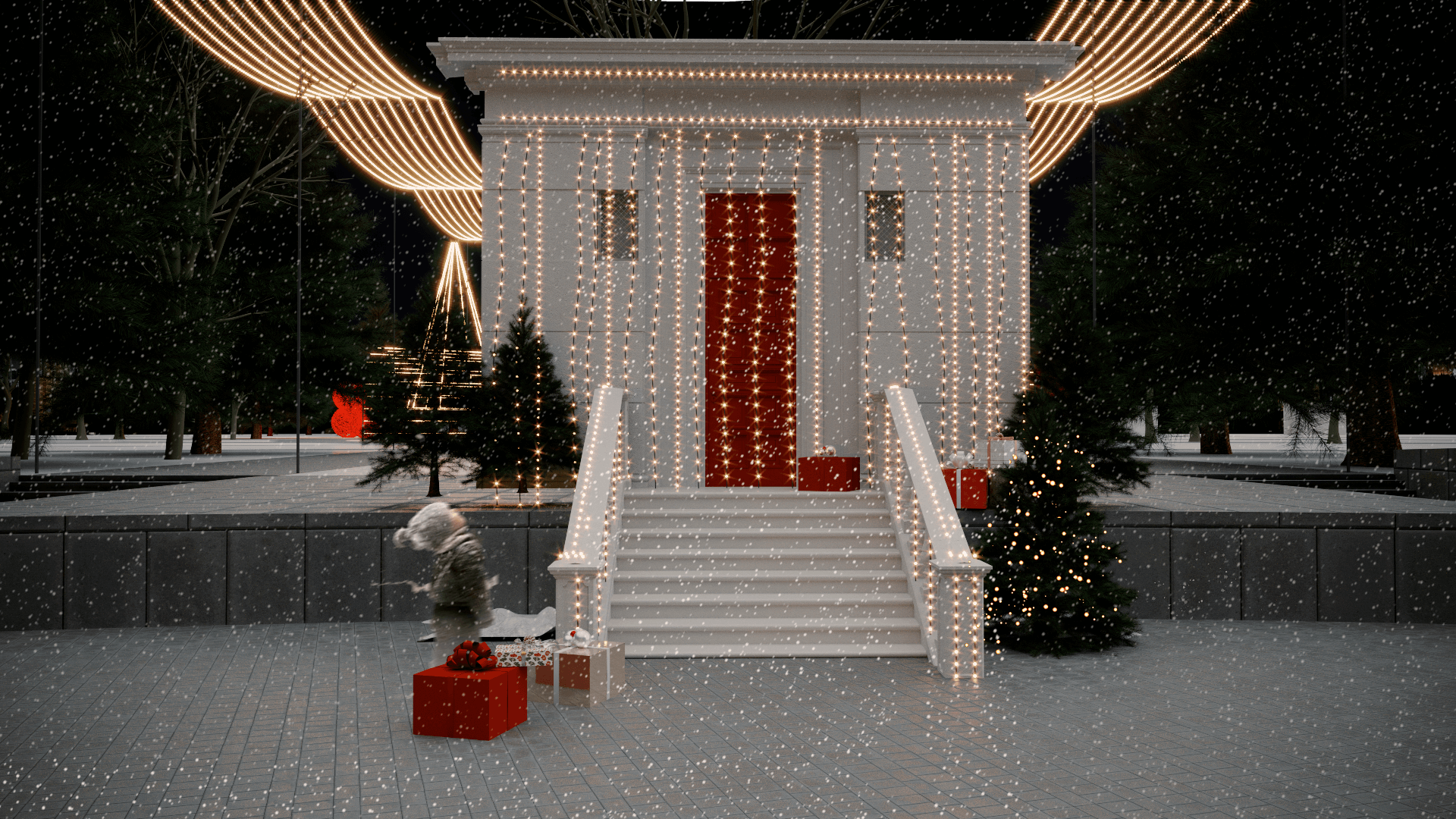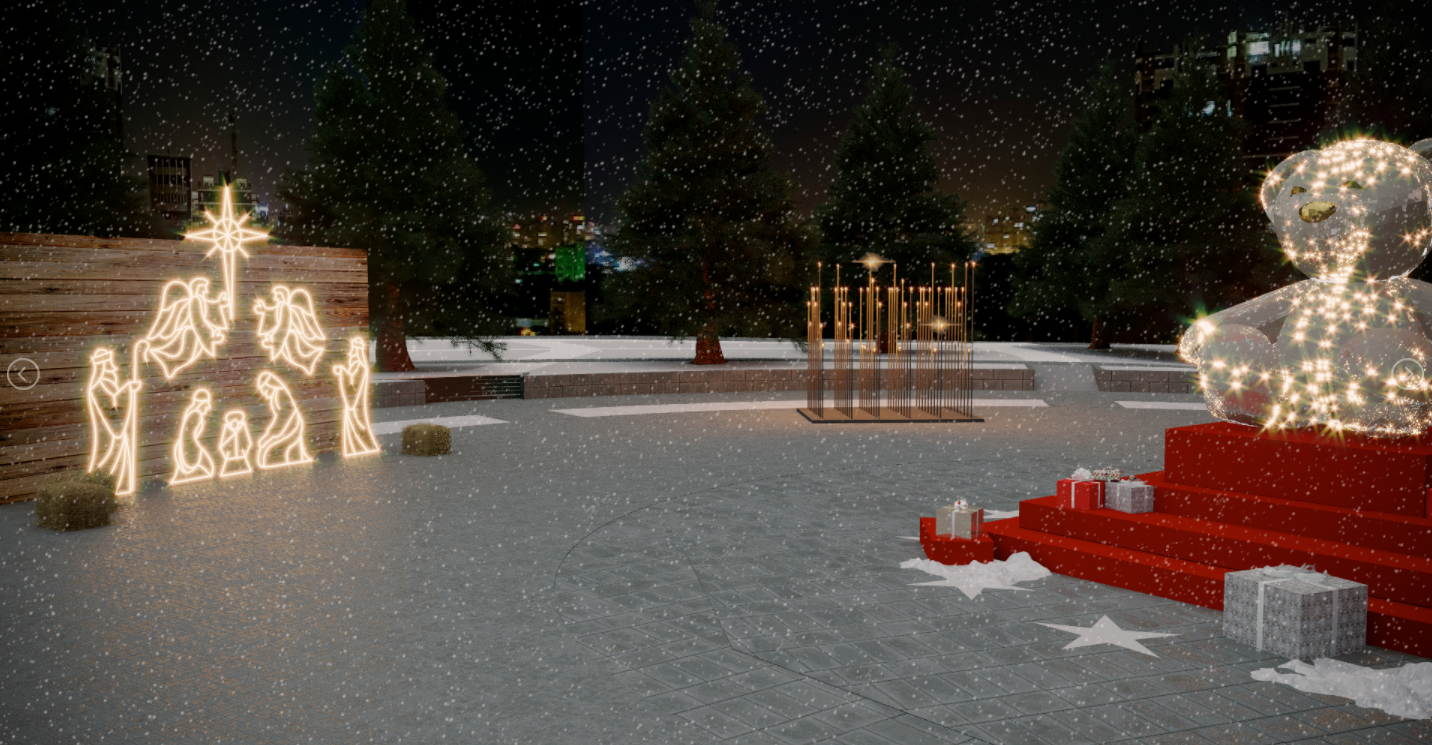 Позаду драматичного театру розмістять символ 2021 року - металевого бика з підсвіткою, виконаного у сучасному стилі. А в центрі музичного фонтану буде величезний ведмедик, оточений подарунками.