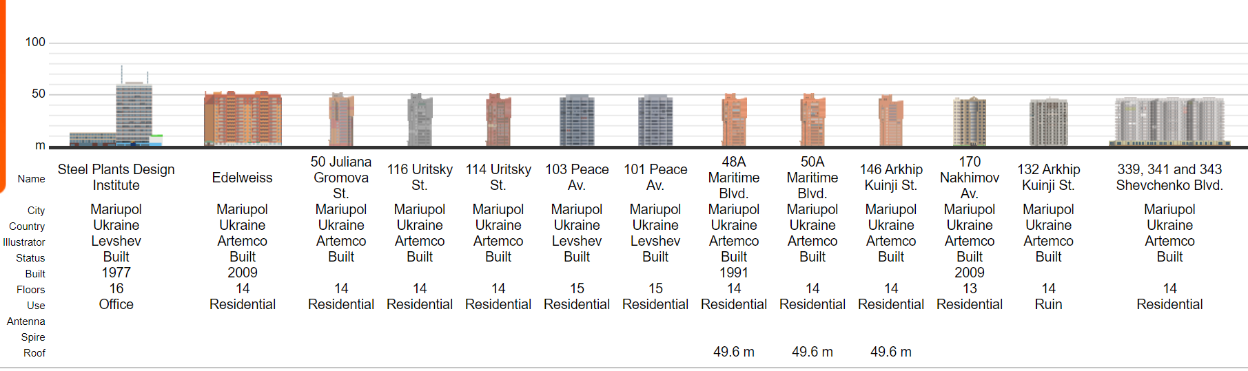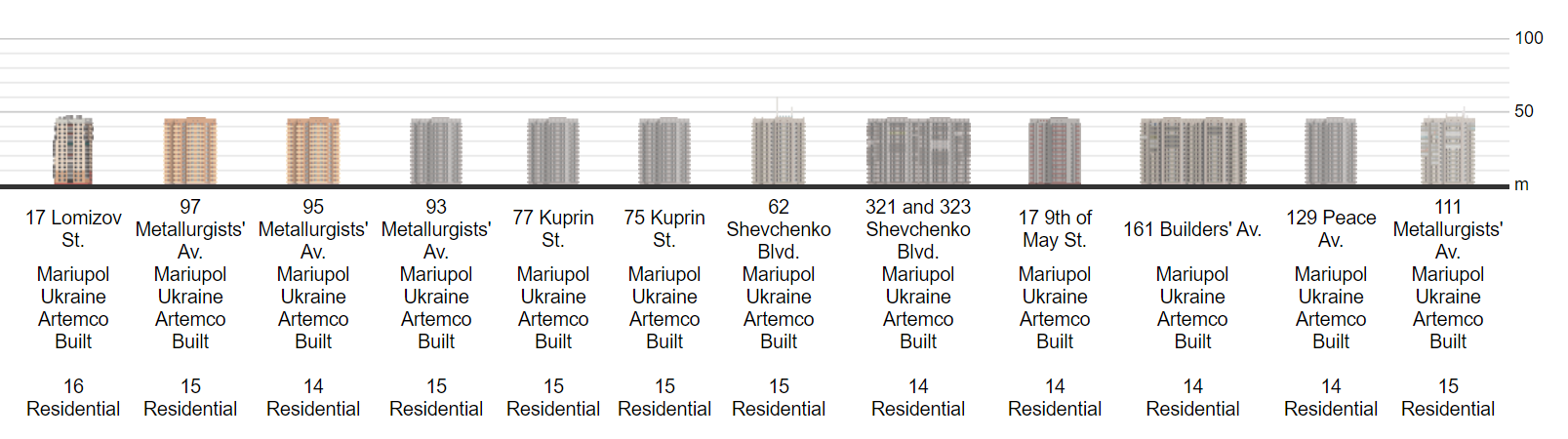 Маріуполь посів 7-ме місце серед міст України за кількістю хмарочосів. В рейтингу SkyscraperPage він обійшов Дніпро, Львів і Запоріжжя.