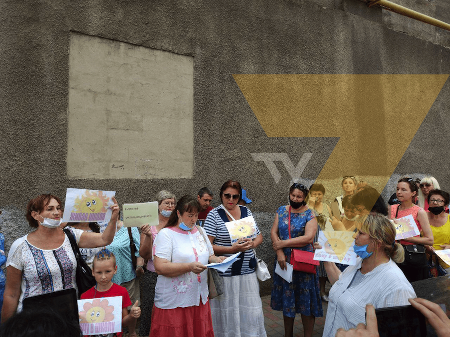 Близько 30 людей вийшли протестувати під двері міської ради із вимогою, щоб у Маріуполі діти навчались за партами, а не в online-режимі. Вони тримали у руках агітаційні плакати: "Жива школа", "Я проти дистанційного навчання", "Хочу до школи".