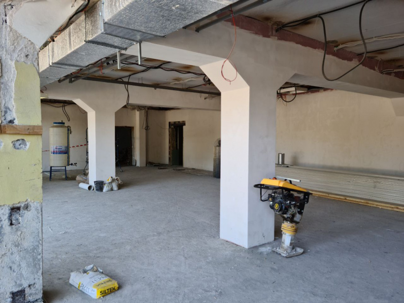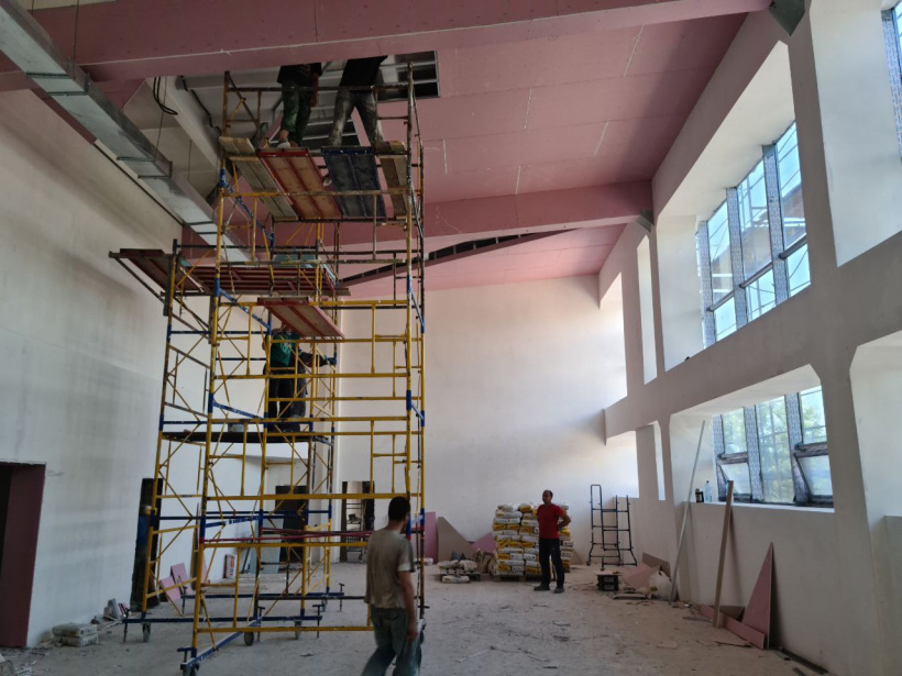 Як повідомляє пресслужба Донецької облдержадміністрації, під час реконструкції зроблено демонтаж старих комунікацій, улаштування підлоги, вітражів, монтаж електричних мереж, завершуються фасадні роботи. Підрядники відремонтували чашу 50-метрового басейну. Зараз займаються її облицювання захисною плівкою.
