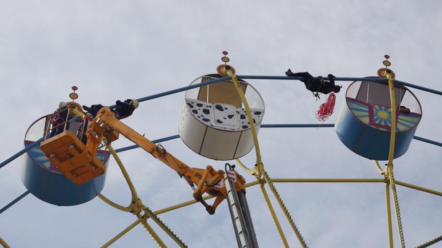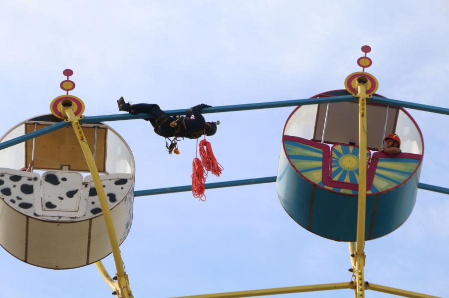 За легендою люди застрягли на оглядовому колесі через знеструмлення атракціону. Допомогли вибратись рятувальники-верхолази. Вони за допомогою спеціального альпіністського обладнання та колінчатого автогідропідіймача здійснили евакуацію людей з висоти, після чого громадянам була надана перша медична та психологічна допомоги.