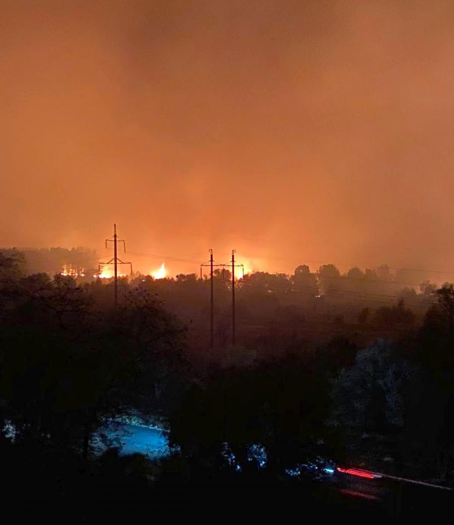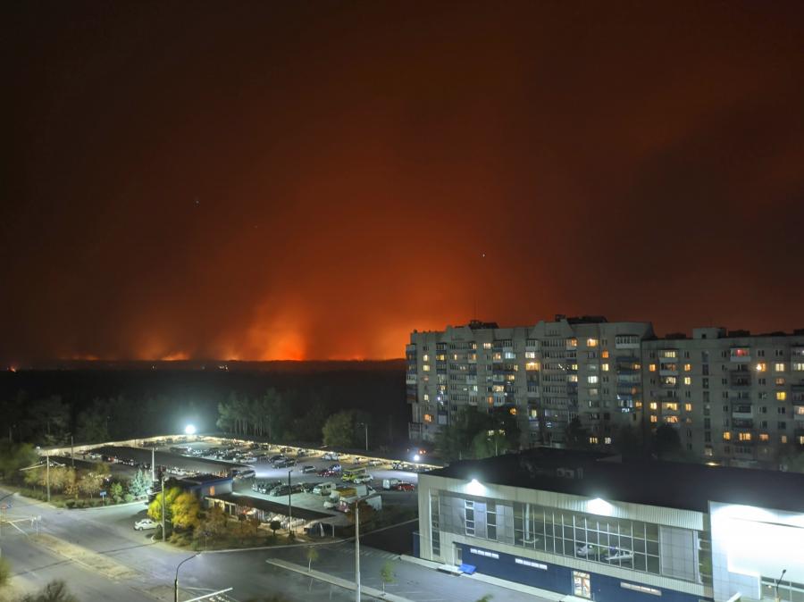 Пожежа вночі розповсюджувалась у напрямку м. Сєвєродонецька. Очевидці зняли на відео "палаюче" червоне небо над обласним центром.