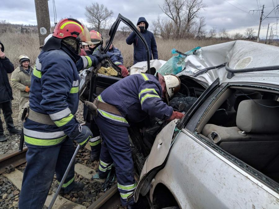 На Донеччині автівка потрапила на залізничному переїзді під приміський поїзд. Водій помер на місці.