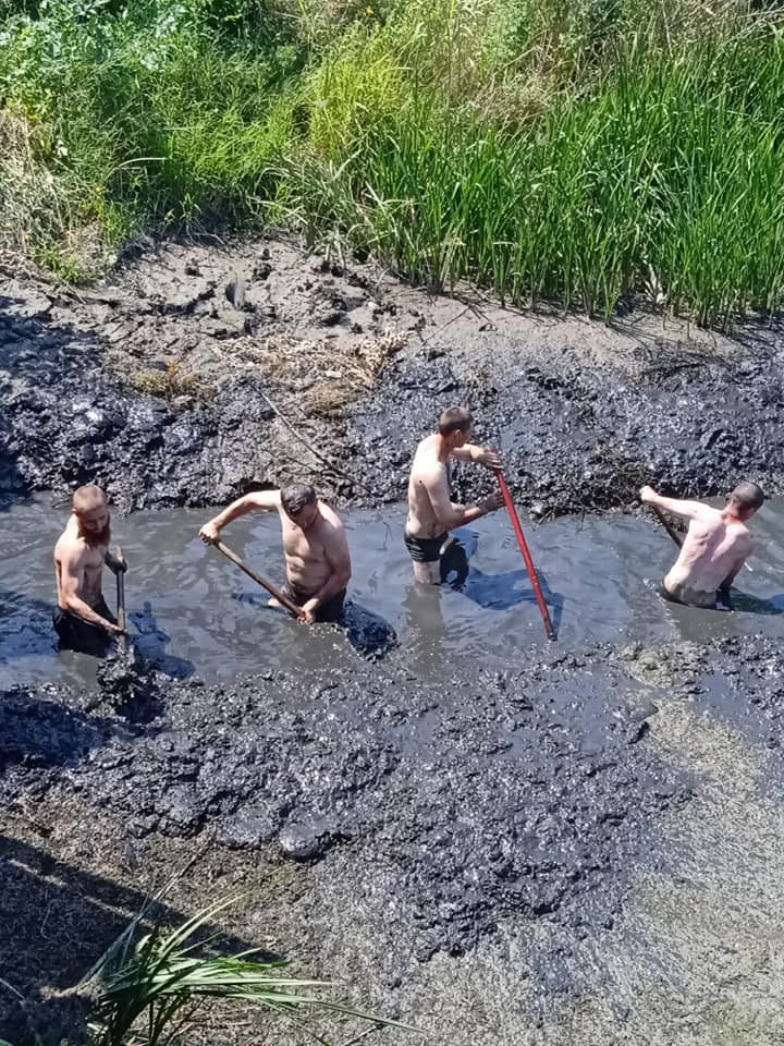 На допомогу мешканцям села прийшли військовослужбовці 24-ї окремої механізованої бригади імені короля Данила. Хлопці по пояс в мул розчищали водопідвідну канаву.