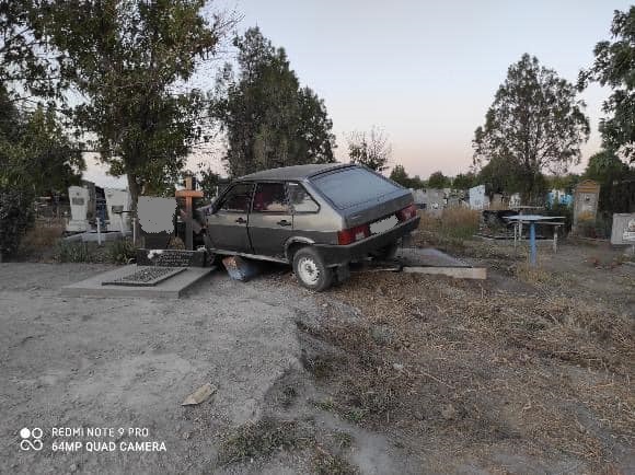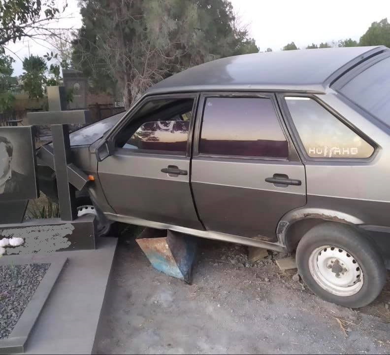 На Новотроїцькому кладовищі Маріуполя сталася аварія. Водії не впорався с керуванням і в'їхав у пам'ятник з хрестом. Про це повідомляють на сторінці DTP.mariupol у Facebook.