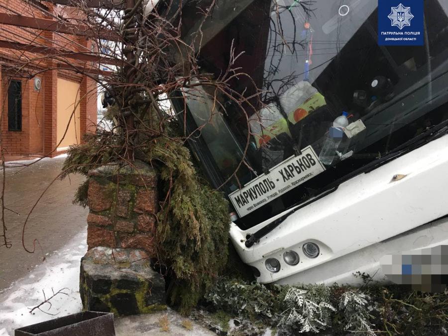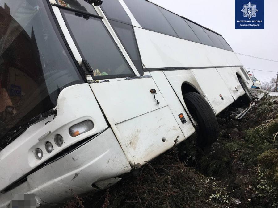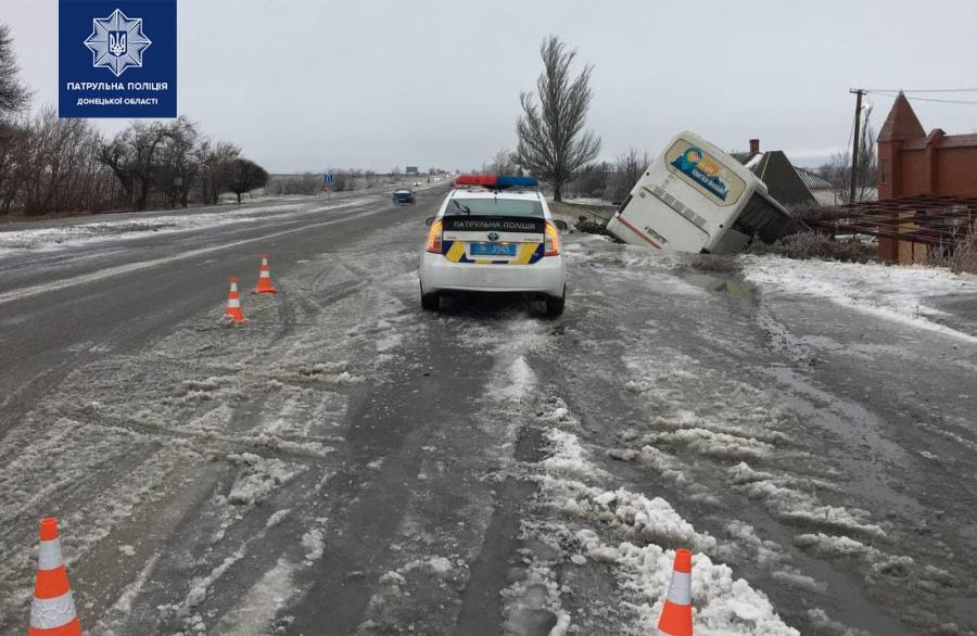 На трасі під Маріуполем водій рейсового автобуса не впорався із керуванням та з'їхав з дороги. В аварії ніхто не постраждав.