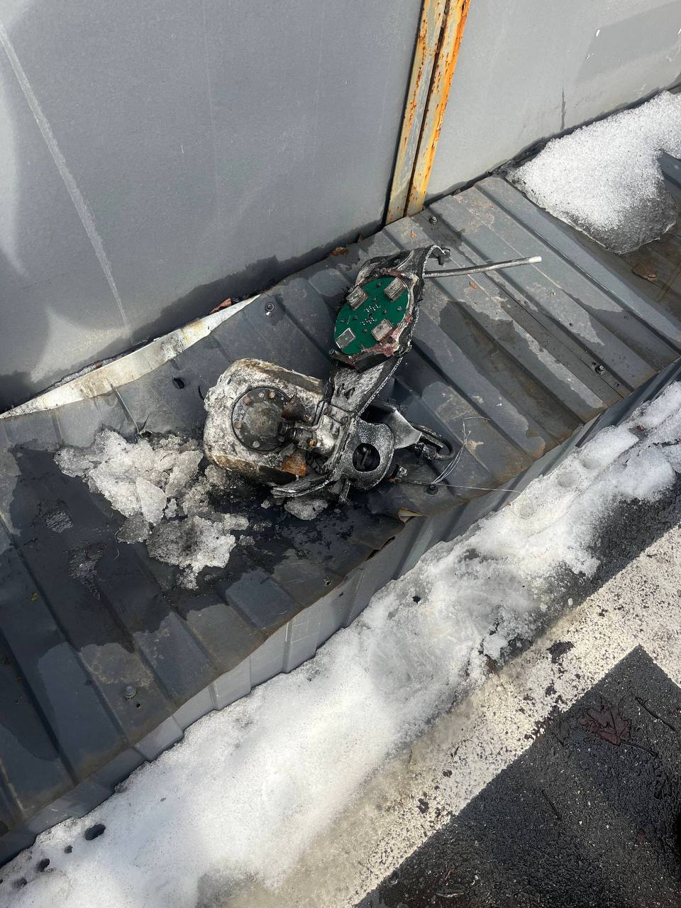 Вочевидь, що він пролежав там протягом певного часу, але був прихований під снігом. Через відлигу сніг розтанув. Уламок смертоносного залізяччя побачили люди і викликали поліцію.