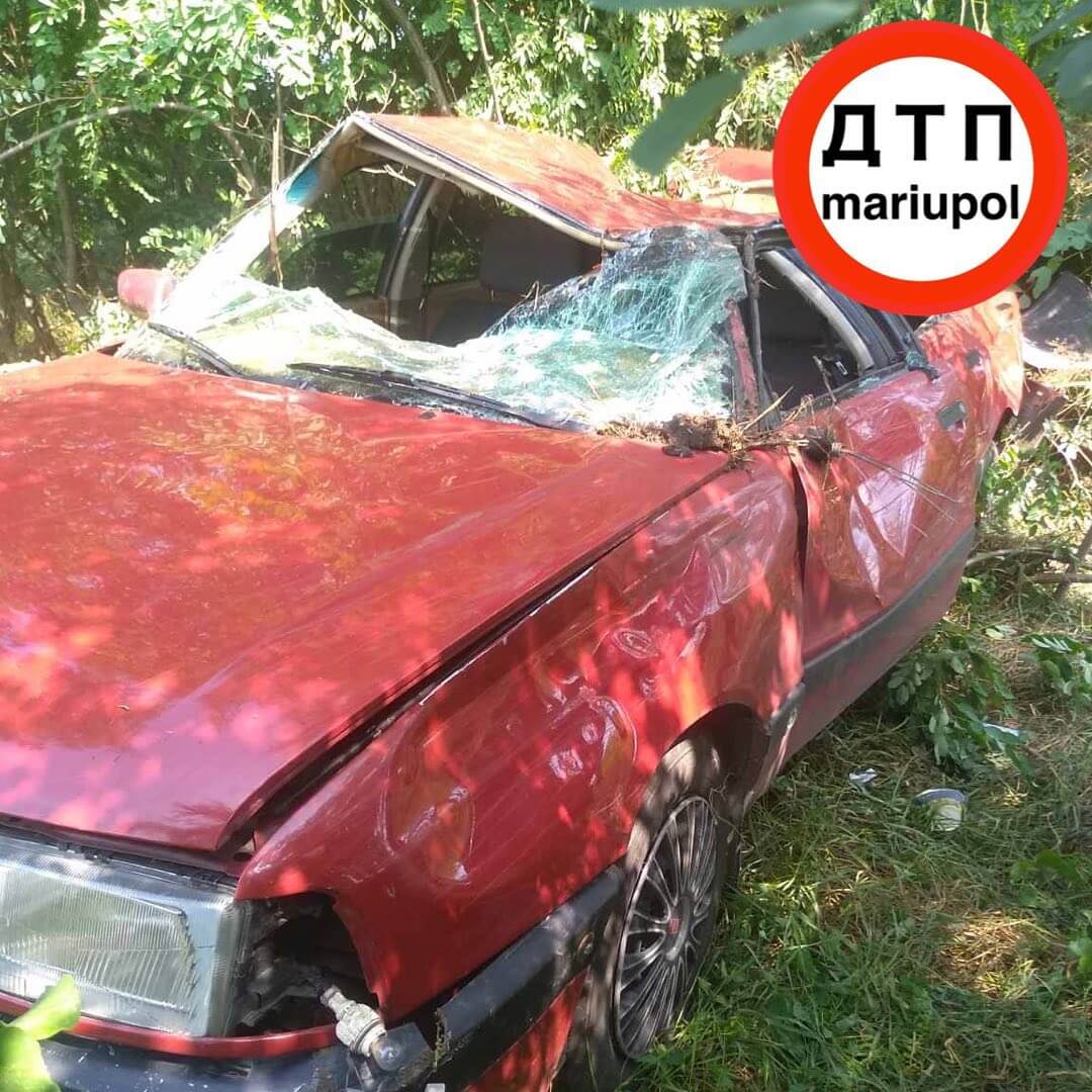На трасі Маріуполь-Мелекено легковик намагався уникнути зіткнення з іншою машиною. Проте, водій в'їхав у кювет через що постраждав.