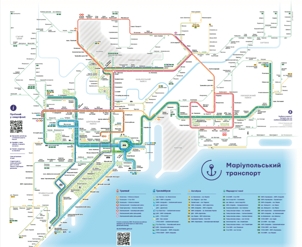 Для зручності на карті є QR-коди мобільного додатку m.martrans.gov.ua та купівлі проїзного квитка у додатку Privat24.