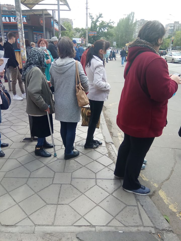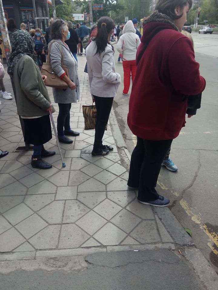 У Маріуполі з 23 травня скасували проїзд по довідках у транспорті. Через це кількість пасажирів збільшилась. Містяни діляться у соцмережах, що по 45 хвилин стоять у чергах, аби поїхати на роботу. Фотографії з зупинки опублікувала Алла Золотницка в одній із груп на Facebook.