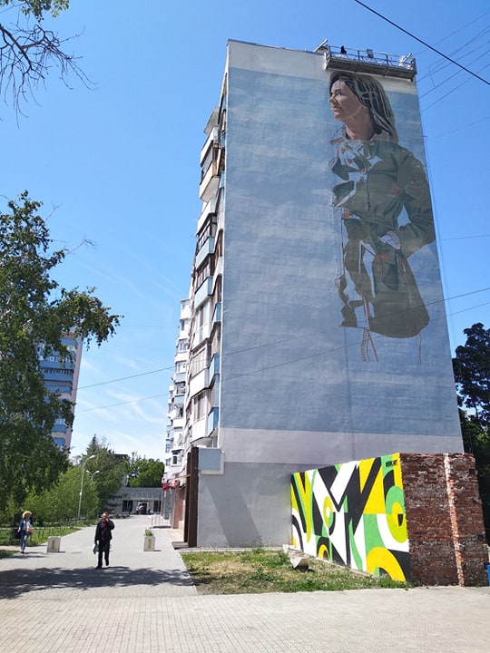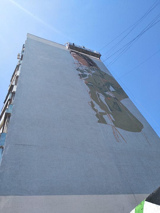 Новий малюнок з'явиться на багатоповерхівці біля скверу "Лукомор'є". На блакитній стіні будинку малюють жінку. Побачити її можна з боку проспекту Будівельників.