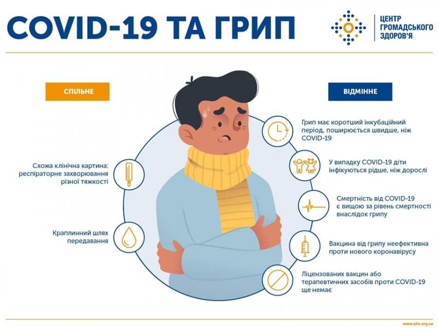Одночасне захворювання на коронавірус та грип може призвести до ускладнень та смерті. Про це на своїй сторінці Facebook повідомив Центр громадського здоров'я.