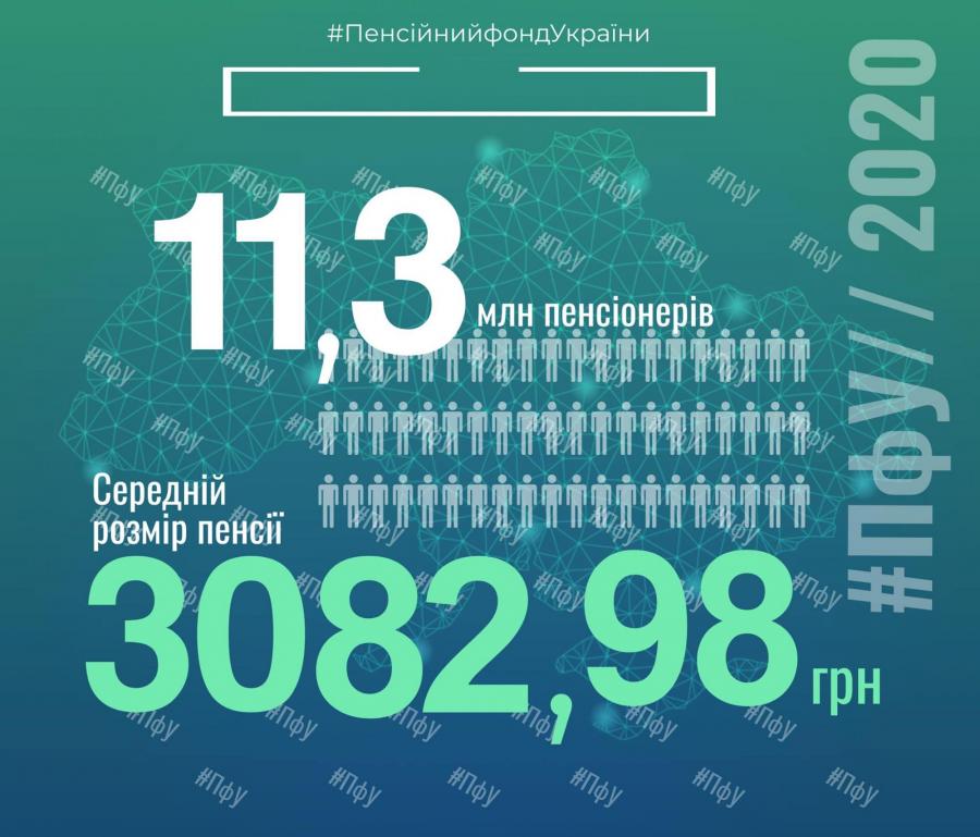 За даними Пенсійного фонду, на 1 січня в Україні налічувалося 11,3 млн пенсіонерів, а середня пенсія склала 3082,98 грн.