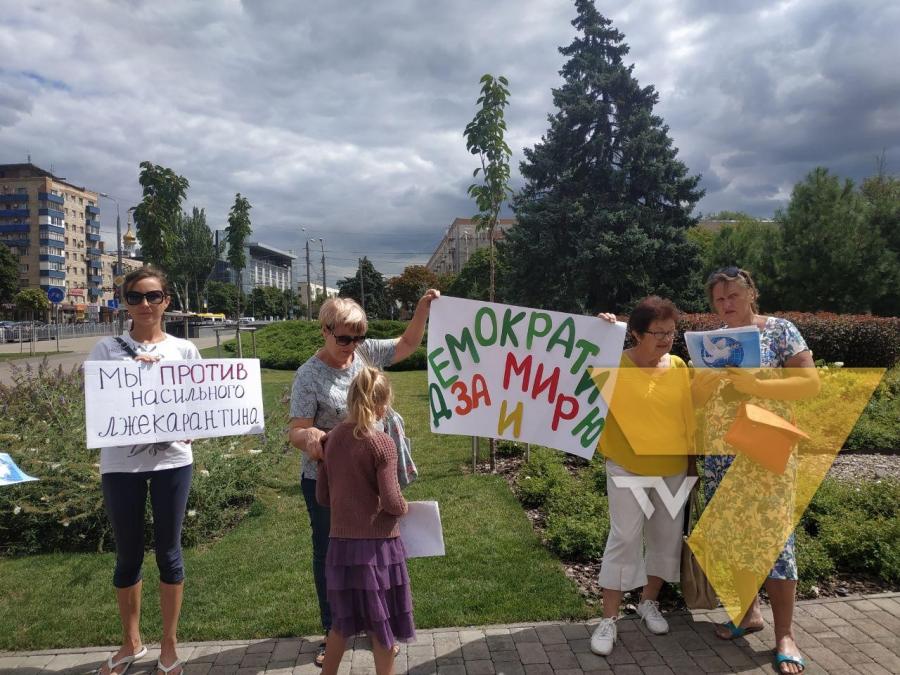 На мітинг вийшло понад 20 людей, переважно всі присутні - люди похилого віку, які не дотримувались дистанції та були без масок. В руках протестанти тримали плакати з різними дописами: "Щеплення наше право, а не обов'язок", "Ні - лже карантину". Також можна побачити й плакати на яких дописи "Мир дітям на Донбасі" та "За демократію і мир".
