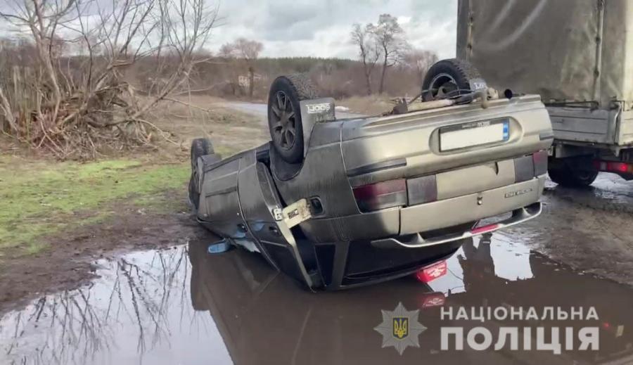 "Сівши за кермо, зловмисник розігнався та не впорався з керуванням на закругленні дороги, внаслідок чого автомобіль перекинувся. Пасажири втекли, залишивши ніж на місці злочину", - вказано на сайті.