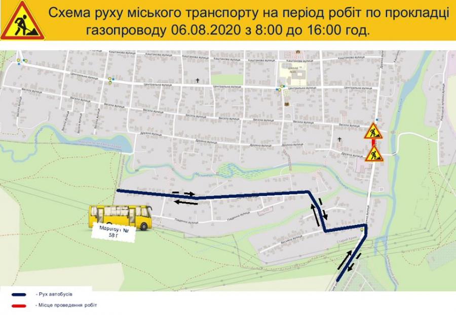 На період проведення робіт рух автобусного маршруту №58т буде організовано об’їздим шляхом: Старокримське шосе – вул. Весняна – вул. Зарічна (кінцева), зворотний рух за такою ж схемою.