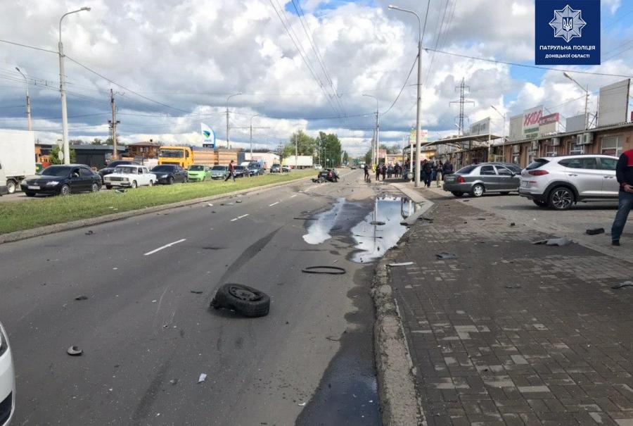 Уламки від автівки лежать за 10 метрів навколо. Дорогу перекрито. Поліція з'ясовує всі обставини.