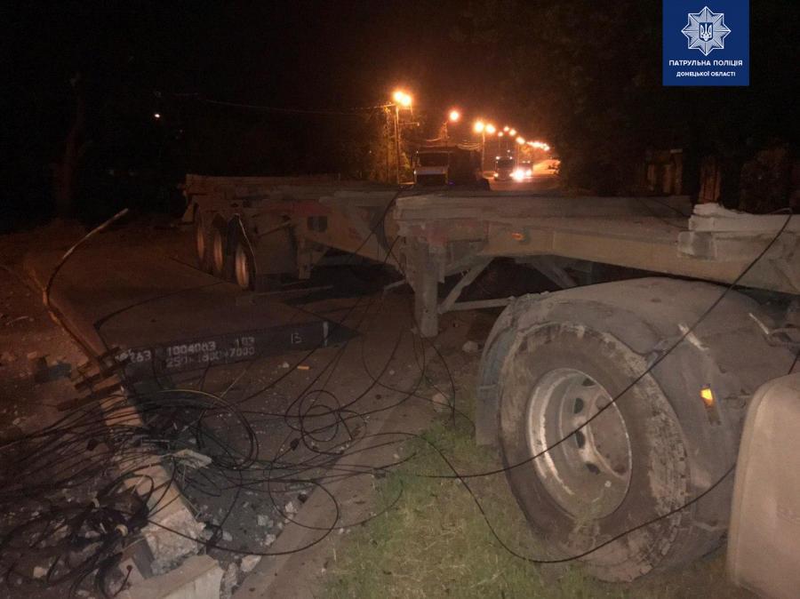 "Подія сталася сьогодні близько третьої ночі, коли водій вантажного DAF з напівпричепом не дотримався безпечної швидкості, не впорався з керуванням та в'їхав в електроопору біля будинку 96. Після зіткнення вантажівка продовжила рух, до того ж з напівпричепа випав сляб вагою майже у 25 тонн", - пишуть патрульні на сторінці.Через транспортну пригоду, рух по вулиці Флотській залишається тимчасово обмеженим, повідомляють правоохоронці, але найближчим часом перекриття буде усунено. За їх інформацією, ніхто в аварії не постраждав, а на винуватця склали матеріали.