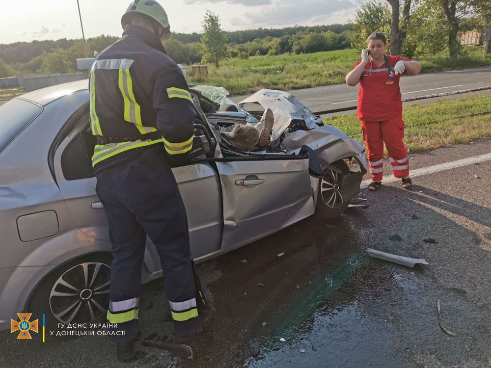 ДТП сталась у Волноваському районі. Зіткнулись легковик та трактор. На місце приїхали рятувальники ДСНС, які за допомогою електричного різака-розтискача деблокували 2-ох постраждалих з легкового автомобіля. Вони отримали серйозні травми. Їх передали медикам "швидкої".