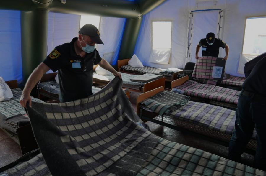 Як пишуть рятувальники, намет та модуль вони ретельно обробляють деззасобом та всі в ньому - дотримуються соціальної дистанції.