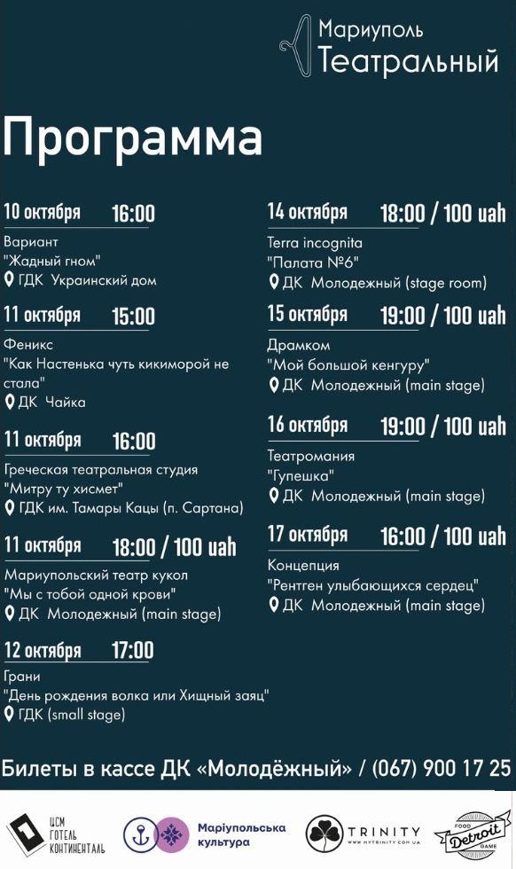 За тиждень театрального нон-стопу пройде 9 різнопланових вистав, які покажуть містянам та гостям міста багатогранність театральної сцени Маріуполя.