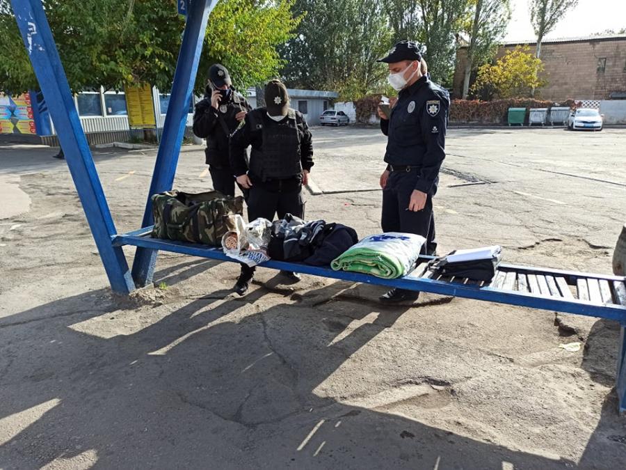 Відкривши нічийну сумку, поліцейські виявили в ній ковдру, чоловічий одяг і консервацію в банках.