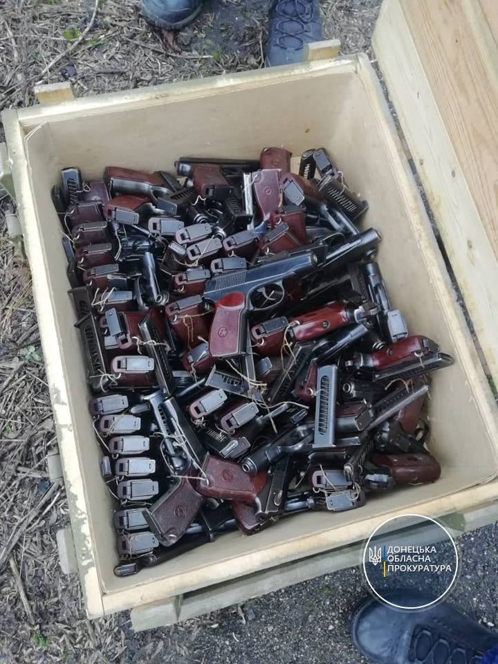 "У ході перевірки оперативної інформації в одній з покинутих будівель у Приморському районі м. Маріуполя виявлено великий схрон зброї та боєприпасів, у якому знаходилось понад 1600 гранат РГД-5 та Ф-1, 2000 освітлювальних ракет, 1060 запалів УЗРГМ, 2 великокаліберні стволи, 61 пістолет Макарова, а також 124 ящики патронів калібру 7,62 та 14,5", - вказано на сторінці.