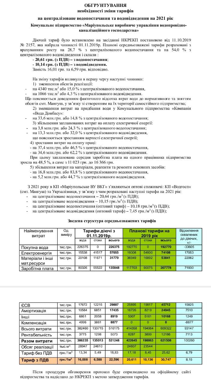 Так, у 2021 році хочуть підвищити тариф за водопостачання на 28,7 %. Ціна становитиме 20,61 грн (з ПДВ) за 1 куб замість 16,01. А тариф на водовідведення підвищиться до 10,14 грн замість 6,59 грн. Обговорення нових цін відбудеться на громадському слуханні 29 грудня у конференції ZOOM.