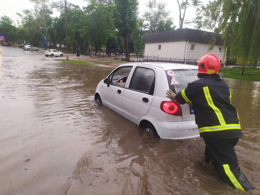 Також, рятувальники надали допомогу водіям. Бійці ДСНС відбуксирували з узбіччя дороги на проїжджу частину 1 легковий автомобіль, 3 легкових автомобіля із місць скупчення дощової води на автодорогах, 1 легковий автомобіль було вилучено з-під металоконструкцій навісу, що обвалився.