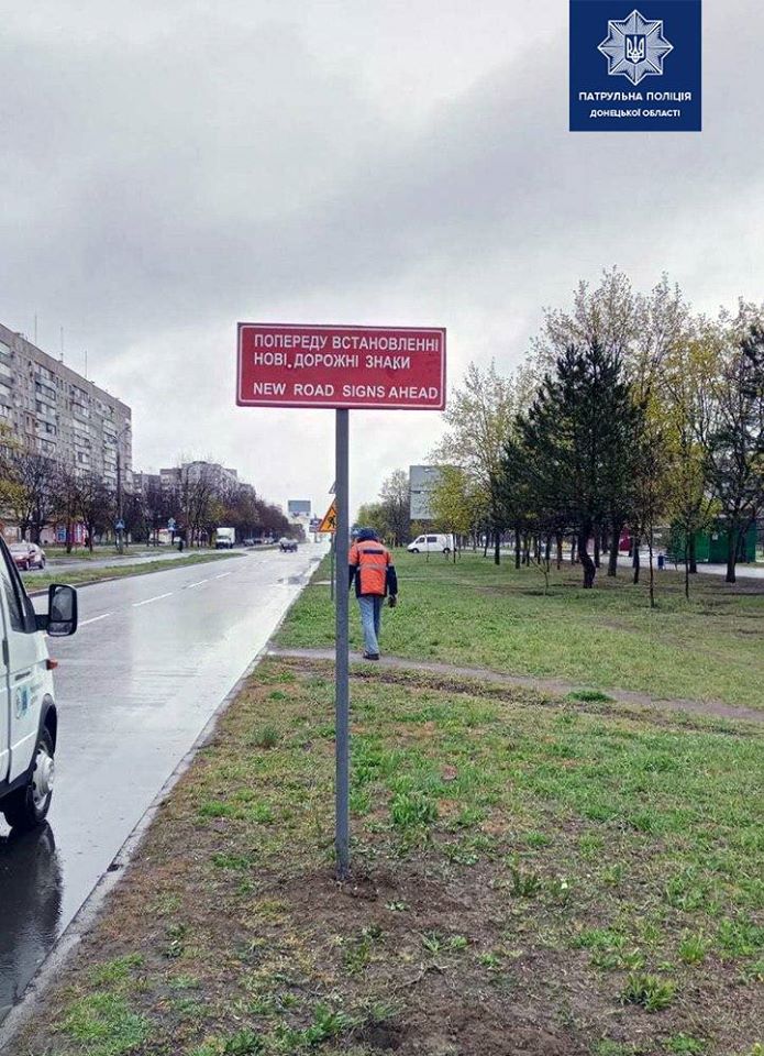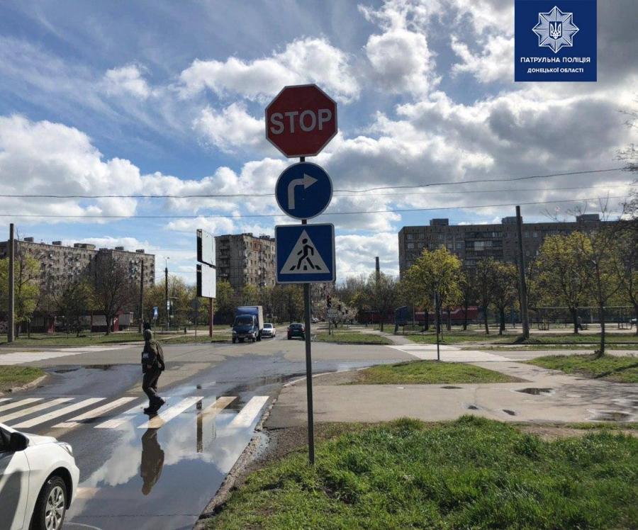 "Дозволений рух тільки праворуч відповідно до знака 4.2, рух прямо, наліво чи розворот — заборонені." - йдеться у повідомленні на сторінці Facebook Патрульної поліції Донецької області.