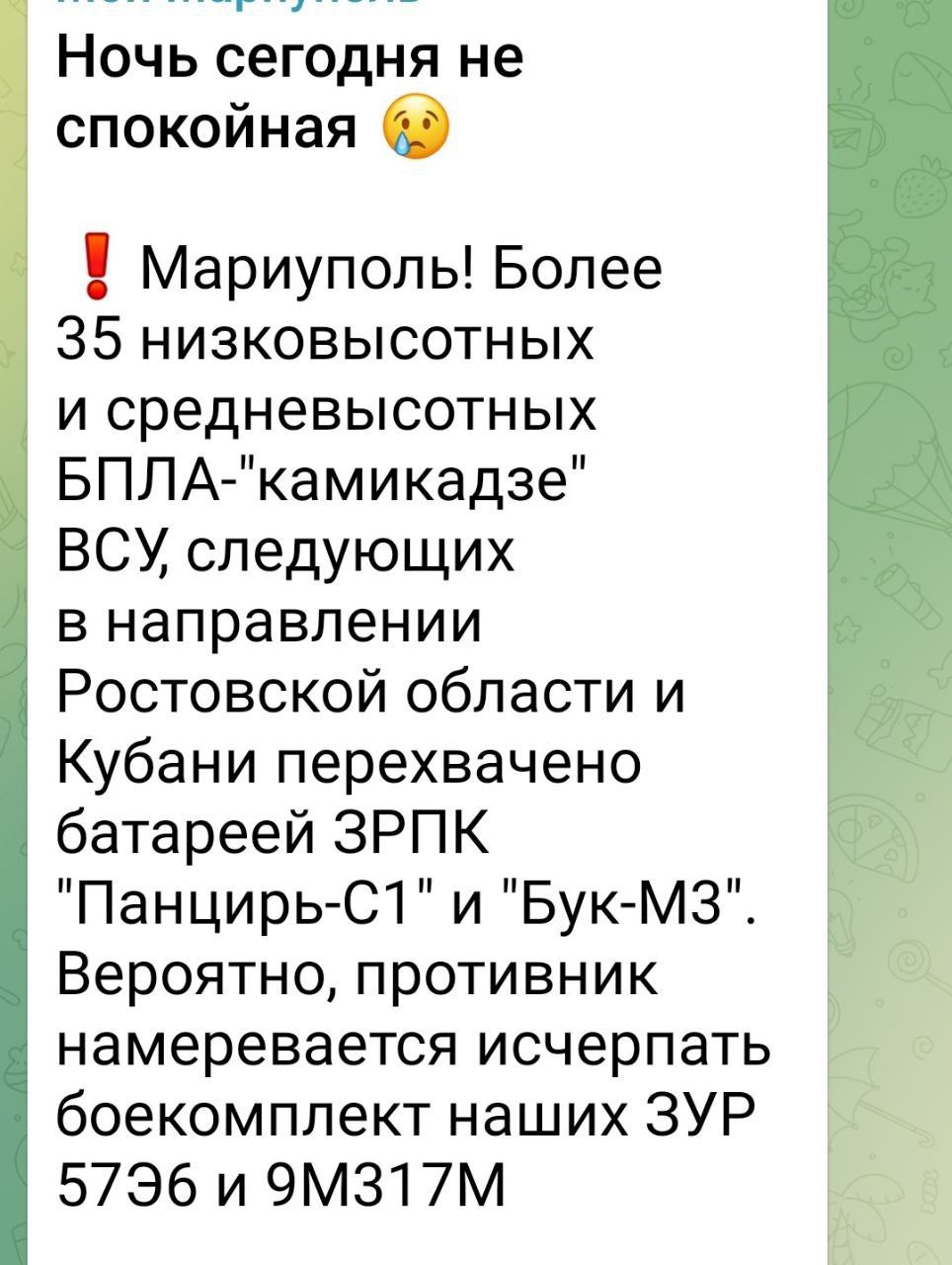 "Атака на Маріуполь з районом розпочалася з 3:35 та тривала до 4:15 ранку. Повідомляли про звуки вибухів та роботу ППО в Мангушському районі (частина Маріупольського), та в Приморському, Центральному та Кальміуському районах міста. В Лівобережному районі зафіксовано базування ППО в районі шлакової гори", - написав радник.