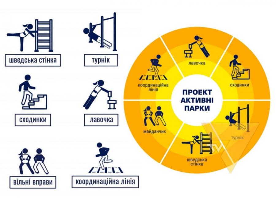 "Там (ред. - у парку "Веселка") будуть стоять інформаційні стенди з QR-кодами. Людина їх сканує за допомогою смартфону і обирає собі комплекс вправ. На вибір буде запропоновано - 6 типів. Можна також обрати рівень складності", - сказав Олексій Казанцев.