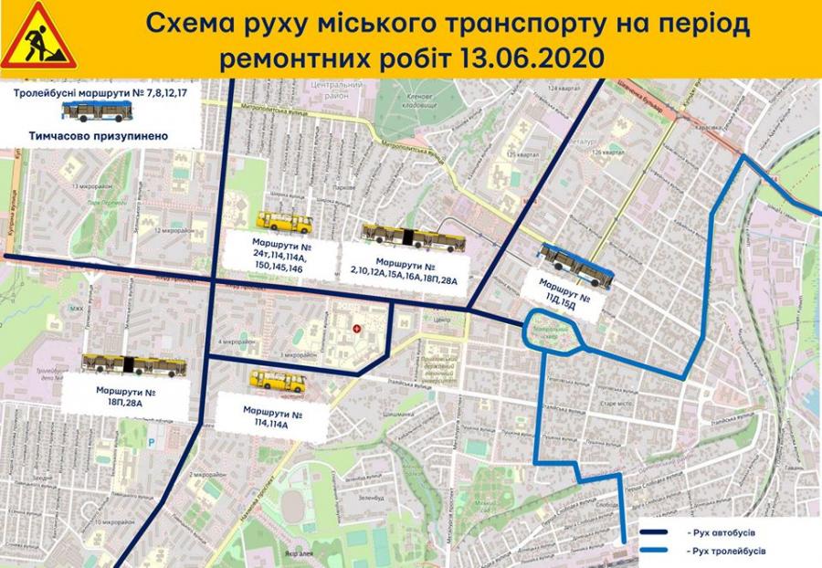 Зміна руху відбудеться через капітальний ремонт по пр. Миру. Буде знято напругу тролейбусної контактної мережі від пр. Будівельників до вул. Леваневського (включаючи перехрестя пр. Миру – пр. Будівельників).