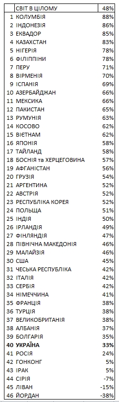 Таким чином, індекс щастя склав 33% проти 8% у 2017 (у 2018 році це запитання в Україні не ставилося).