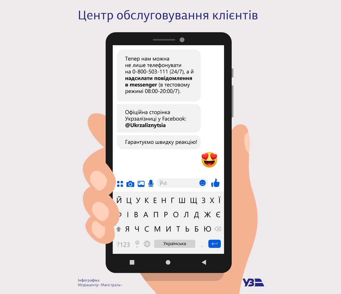 Зараз підтримка через месенджер працює у тестовому режимі щодня з 8:00 до 20:00. У Facebook «Укрзалізниці» можна звертатися зі скаргами, питаннями та пропозиціями.