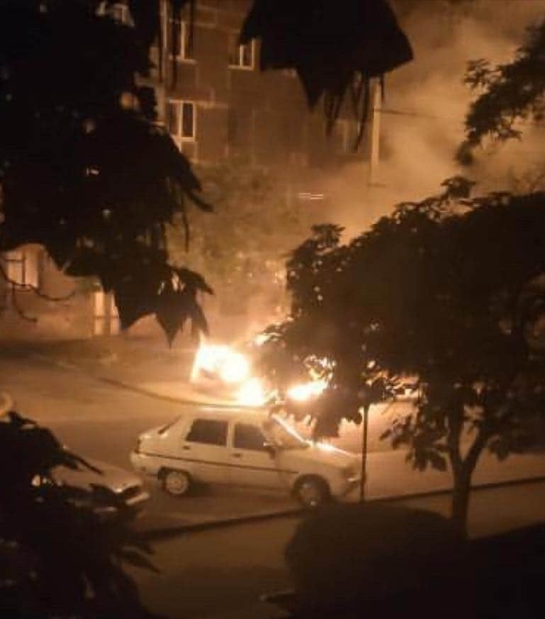 Й досі понівечена машина стоїть на парковці біля багатоповерхового будинку на вул. Соборна. Її тимчасово прикрили простирадлом. Власник автівки припустив, що пожежа могла виникнути через підпал.