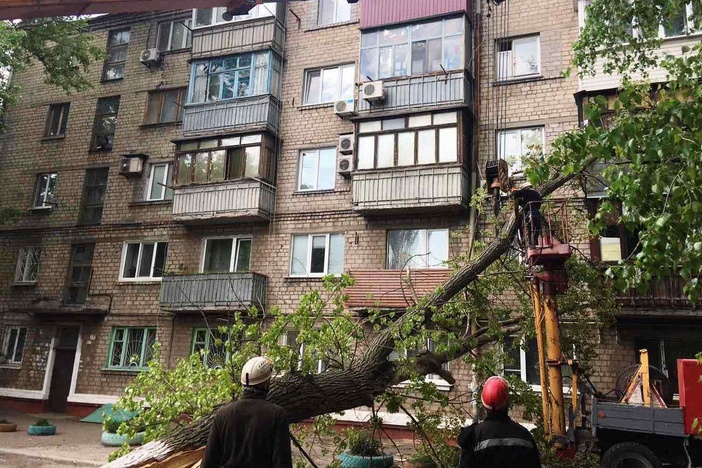 Так, на Лівобережжі на проспекті Перемоги, 11 травня, впало 12-метрове дерево на будинок і через це з'явилася загроза руйнування балконів. Таке саме височенне дерево розкололося і небезпечно нахилилося над житловою багатоповерхівкою на Морському бульварі. А у Приморському районі - впало на пішохідний тротуар.