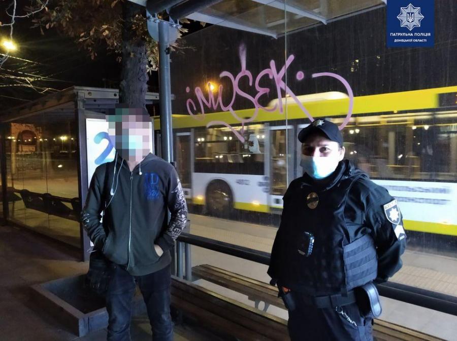 За детальним описом вже за декілька хвилин патрульні знайшли винуватця. Ним виявився 22-річний маріуполець, який при собі мав балончик з рожевою фарбою і не заперечував, що він залишив напис.