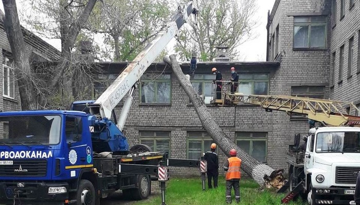 "Рятувальники-техніки оперативно зреагували, виїхали на місце і зняли дерево з покрівлі без пошкоджень будівлі. Далі співробітники «Зеленбуду» справили розпил та утилізацію сухої крони дерева", - йдеться на сайті міськради.