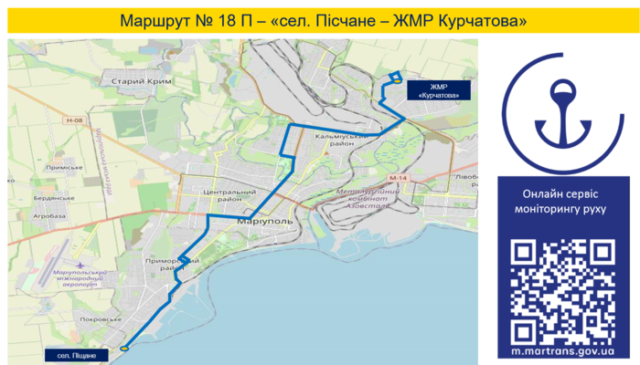 18П буде курсувати за маршрутом 18А, але у літній період з кінцевою зупинкою в сел. Піщане.